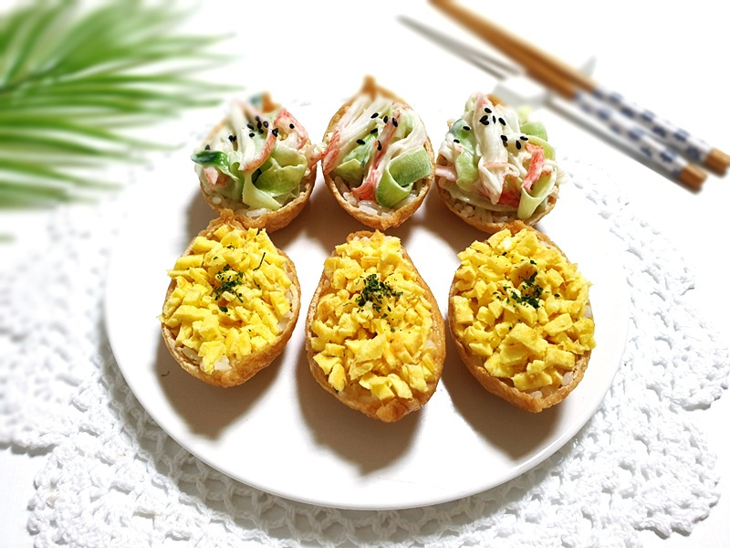 おうちで簡単!卵とカニカマのトッピングで味と食感をプラスした特製いなり寿司