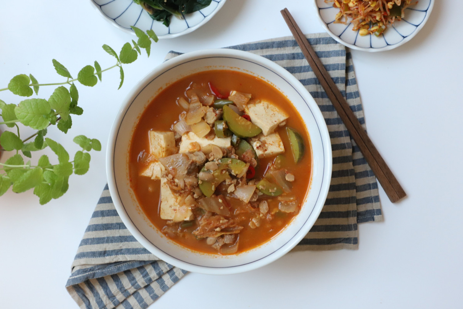最後に、韓国醤油(グク간장)大さじ2を加えて味を調え、刻んだ青唐辛子と赤唐辛子を加えます。(豆腐はレシピに含まれていませんが、加えたい場合はこのタイミングでどうぞ。)