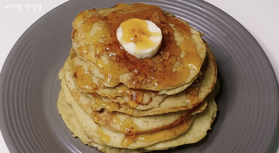 パンケーキの上にシナモンパウダーを軽く振りかけると、見た目も香りも良くなります。お好みで粉砂糖を少し振りかけても美味しいです。