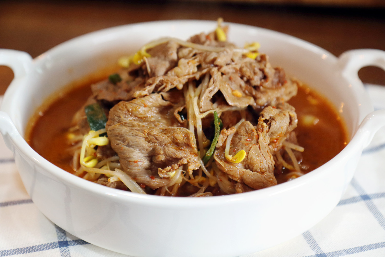 蓋をして、ごく弱火でもやしと牛肉がすべて火が通るまでじっくりと煮込みます。約10~15分ほど煮ると美味しく仕上がります。牛肉が煮えすぎないように注意し、もやしはシャキシャキとした食感を残すのがおすすめです。熱々をどうぞ!