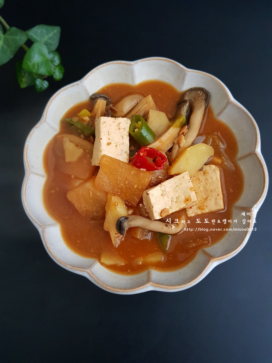 香ばしくコクのある、韓国のソウルフード、テンジャンチゲが完成しました!温かいご飯と一緒に美味しく召し上がってください。肌寒い日に特におすすめの一品です。