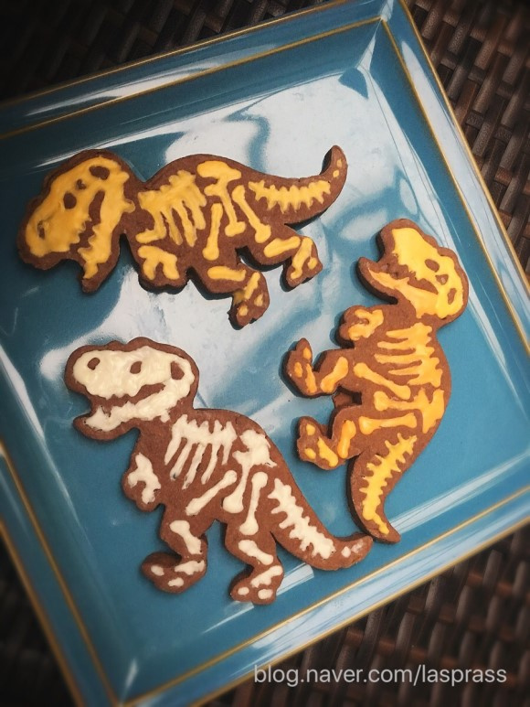 とても簡単でしょう?恐竜の骨の部分をチョコレート色にしたかったので、ココアパウダー10gを生地に加えて一緒に混ぜました。ココアパウダーの量は、お好みで調整したり、省略したりしても構いません。