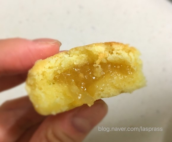 切ってみると、濃厚なパイナップルジャムがたっぷり入っているのがわかりますか?一口食べると、口いっぱいに広がる甘いパイナップルの味と、サクサクとしたクッキー生地の食感が絶妙なハーモニーを奏でます。味は最高です!ぜひ皆さんも作ってみてください。「合格」です!