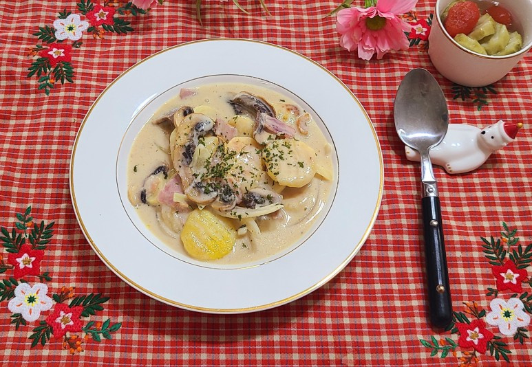 ソースとよく絡んだニョッキを、温かいうちに召し上がってください。外はカリッ、中はもちもちのニョッキと、濃厚でクリーミーなソースの組み合わせは絶妙です。見た目も華やかな、本格的なイタリアの家庭料理が完成しました。