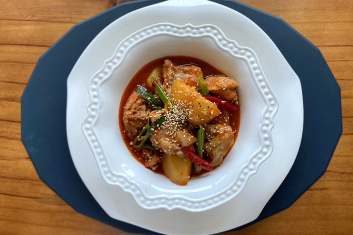 大きめに切って入れたじゃがいもが、タッポクンタンにボリューム感を与え、満足感のある一品に仕上げます。