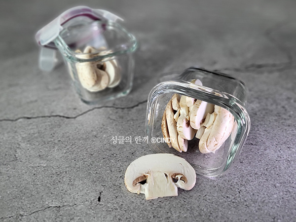 保存の効率を高めるため、ラベルプリンターで冷凍した日付と保存期間を印刷して容器に貼っておきました。このように冷凍庫にいくつか準備しておくと、とても心強いです!ちなみに、冷凍マッシュルームを調理する際は、解凍せずにそのまま加熱するのがおすすめです。解凍するとマッシュルームから水分がたくさん出てしまい、風味にも影響を与えてしまうからです。