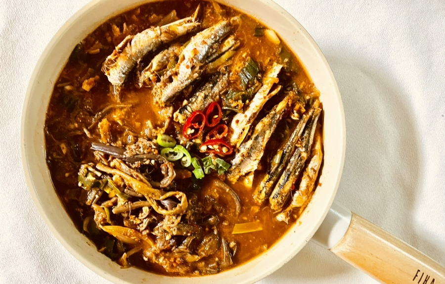 今日は市場で、とれたての新鮮な生アジを見かけて、思わず一袋買ってしまいました。この新鮮なアジを使って、風味豊かなアジの煮込みを作り、ボリューム満点の「アジのサンバプ」をいただくことにしたのです。柔らかく下茹でしたゼンマイと里芋の茎を一緒に煮込むと、アジの身はタレがしっかりと染み込んでふっくらとし、シャキシャキした野菜と一緒に、ご飯をたっぷり包んで食べれば、他のおかずが全く必要ないほどの完璧な一食になります。失っていた食欲を取り戻したい時や、特別な一品を楽しみたい時、ぜひ試してみてください!