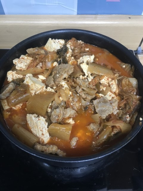家族みんなで楽しめる、ピリ辛で美味しい豚肩ロースキムチチゲの作り方