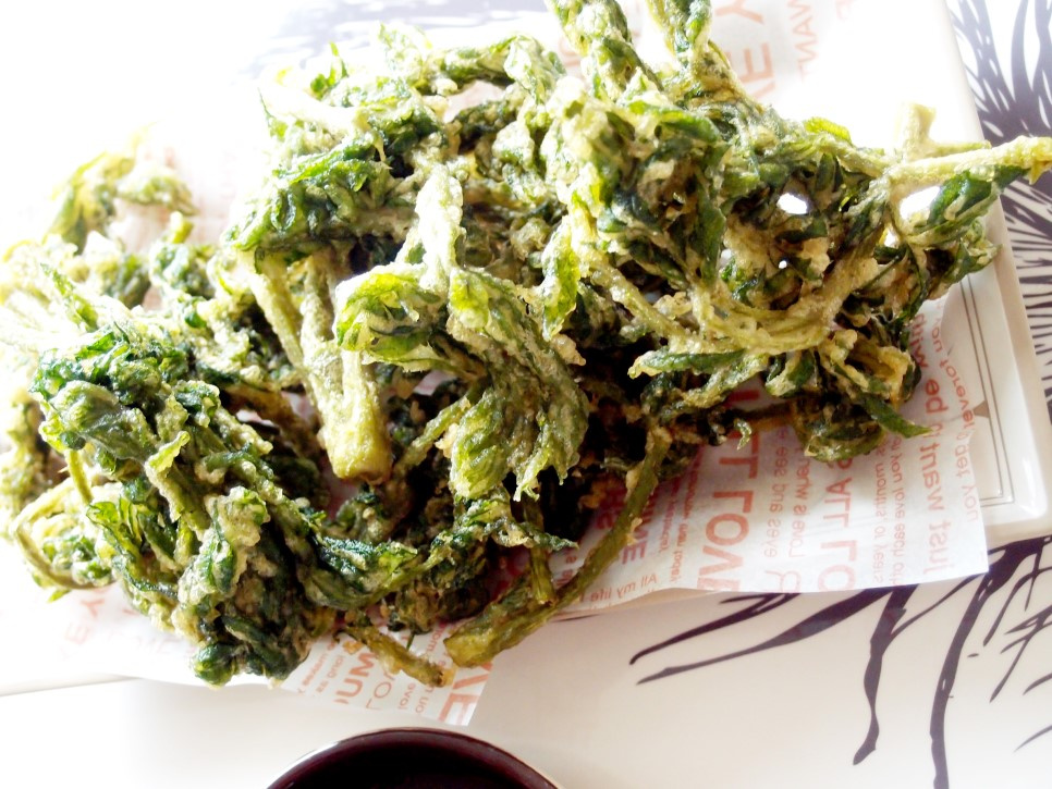 独活はすぐに揚がるので、衣がきつね色になり、独活が鮮やかな緑色を保っているうちに、すぐに引き上げます。揚げすぎると独活の風味が飛んでしまい、食感が硬くなることがあります。