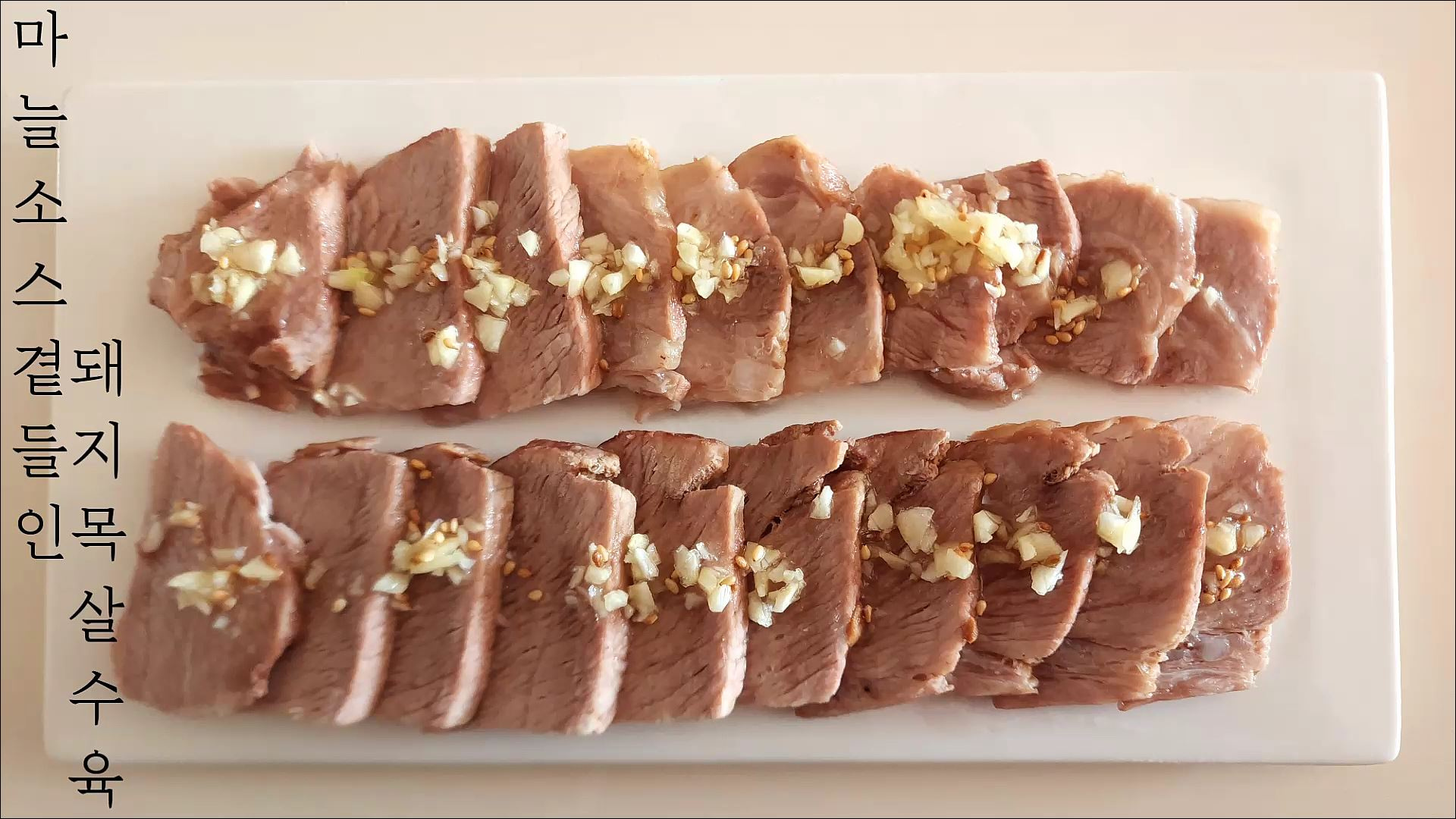 豚バラ肉の茹で肉は脂っこくなりがちですが、私たちは家族で楽しめるように、あっさりとして柔らかい豚肩ロース部位を使用し、より豊かな風味と食感を引き出しています。噛み応えのある肉と、甘辛いニンニクソースの組み合わせは、忘れられない味わいを生み出します。