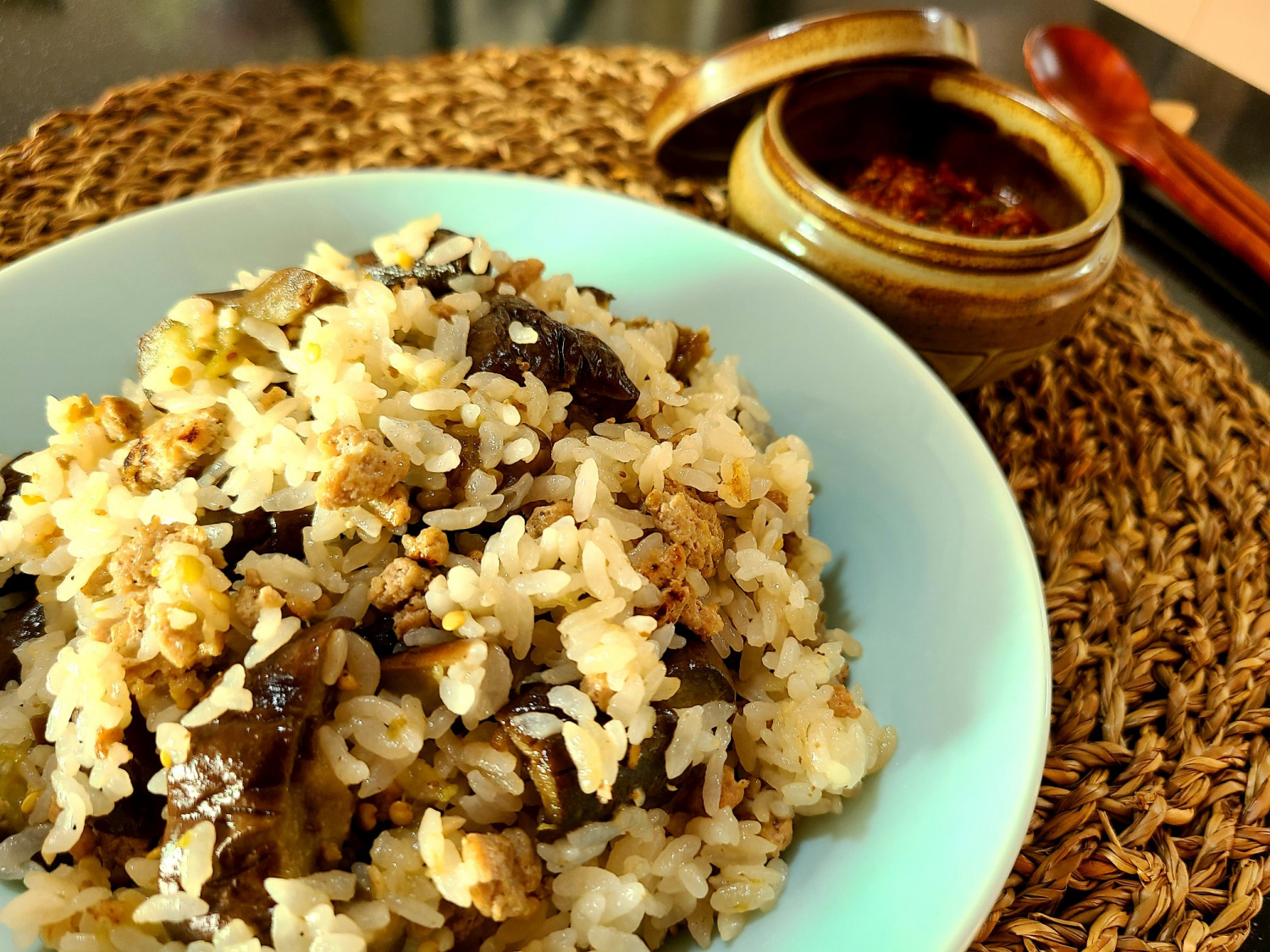 炊きあがったナスご飯に、作った合わせ調味料を添えて、美味しく混ぜてお召し上がりください。一膳で満足感があり、栄養満点なナスご飯をお楽しみいただけます。