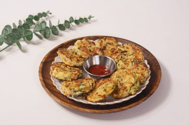 フライパンに多めの油を熱し、中弱火にします。お米の生地をスプーンでひとすくいし、フライパンに落として、円形に少し厚みが出るように形を整えます。両面がきつね色になるまで、焦げ付かないように火加減に注意しながら焼いたら完成です。熱々をお召し上がりください!