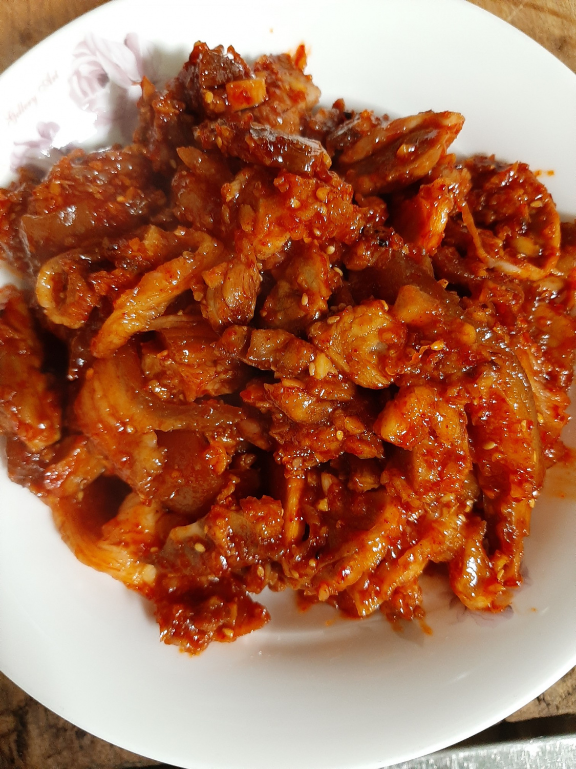 さあ、これで、普通だった残りの豚足が、見栄えも良く美味しい「甘辛豚足炒め物」に大変身しました!仕上げにごまをパラパラと散らせば、見た目も美しく、さらに風味豊かになります。残った豚足で、満足感のある美味しい一食をどうぞ!