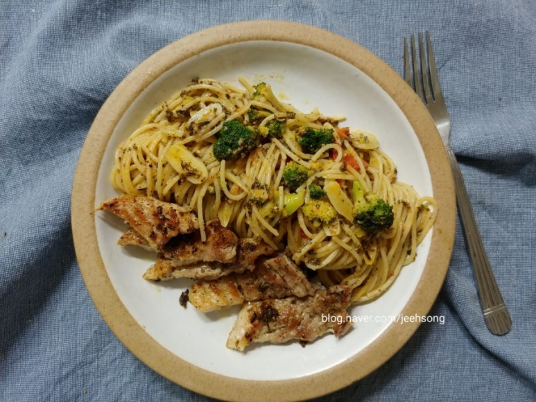 海藻ペストパスタ:豚バラ肉のグリルがなくても十分美味しい!