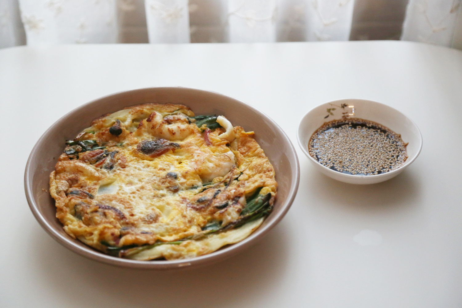 家庭で作る美味しい海鮮チヂミのレシピ(ニラ、イカ、エビ、ムール貝を使用)