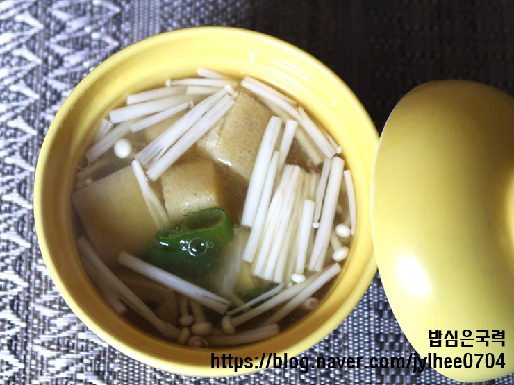 こうして、温かくて美味しい油揚げのお味噌汁が完成しました!食卓に素晴らしい副食として、またメイン料理に添えて満足感のある一食としても最適です。ビビンバ、チャーハンなど、どんな料理とも相性抜群です!