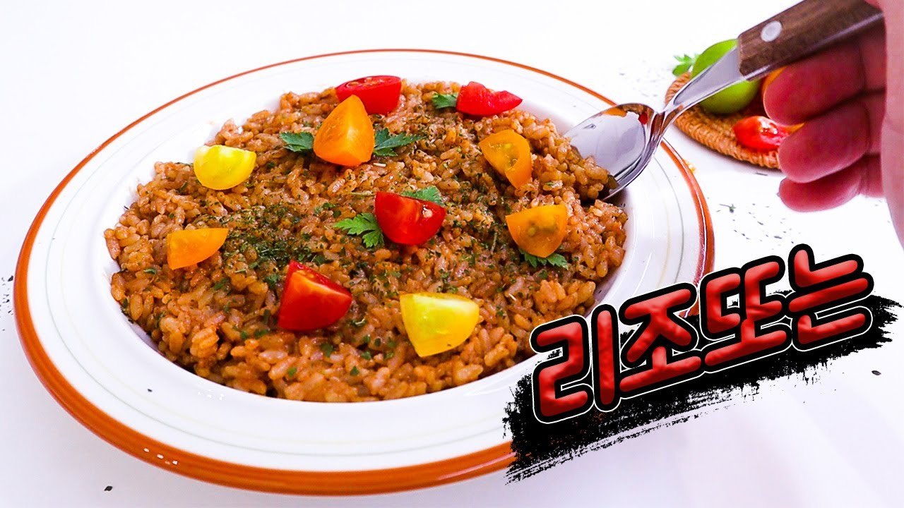 最後に、リゾットの中央にミニトマトを美しく置くと、視覚的にも美しいリゾットが完成します。
