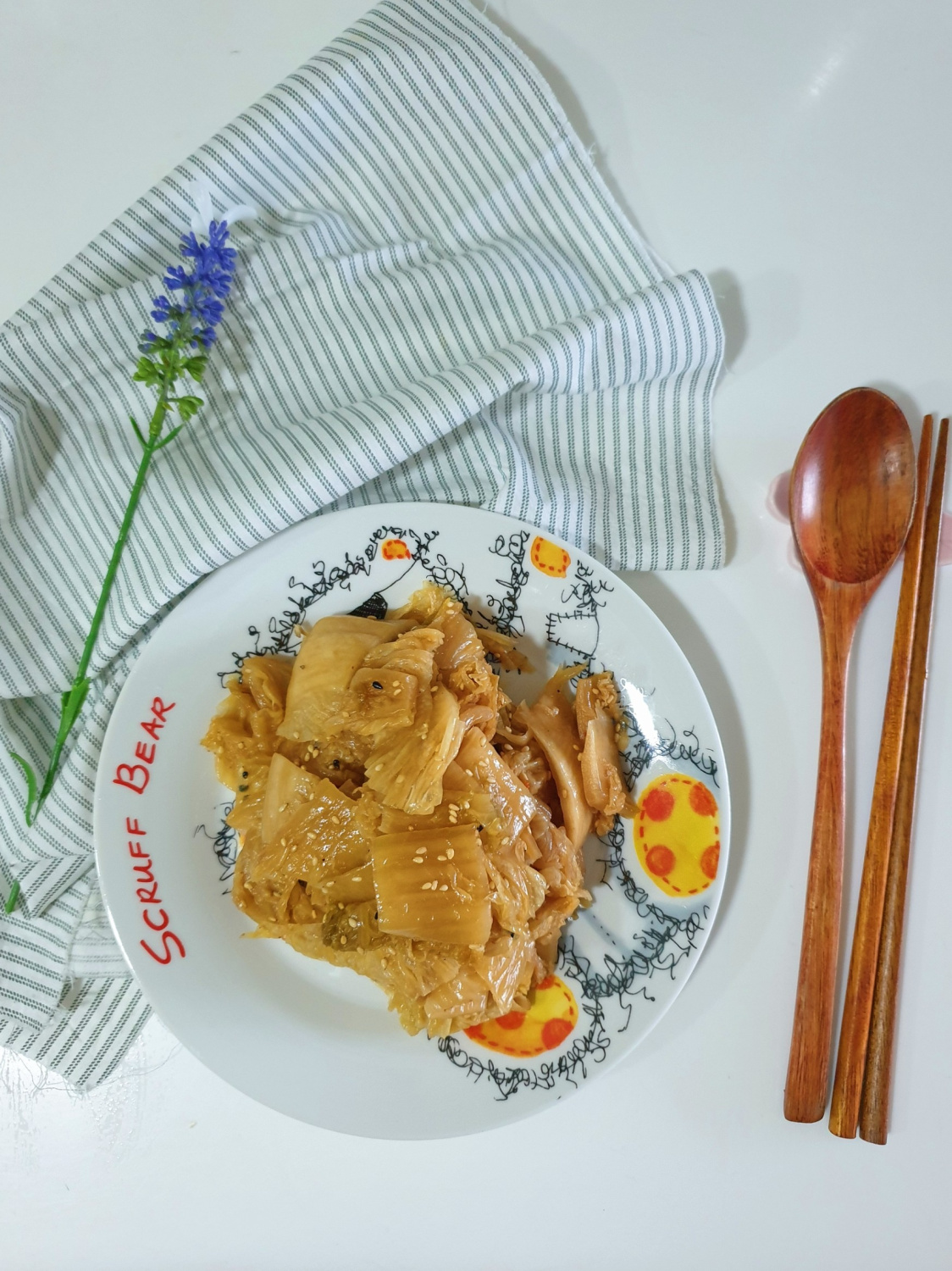 ここで一つコツ!砂糖を少し加えることで、熟成キムチの強い酸味を和らげ、旨味を引き出してくれます。キムチの酸味の強さに応じて、砂糖の量を調整してくださいね。美味しい熟成キムチの和え物の完成です!