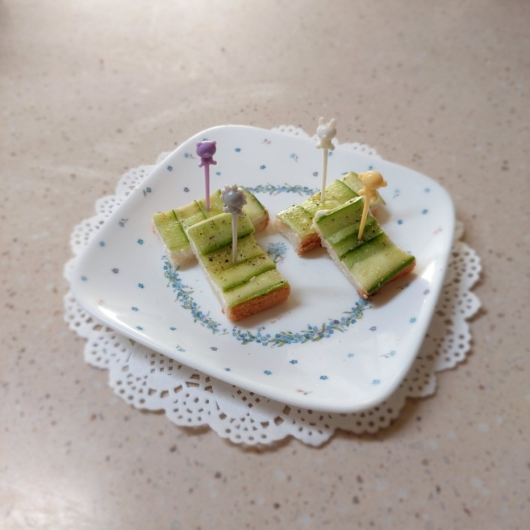 香りの良いきゅうりとクリーミーなチーズの組み合わせが絶妙な、軽やかでさっぱりとしたサンドイッチです。ブランチやおやつにぴったりですよ!