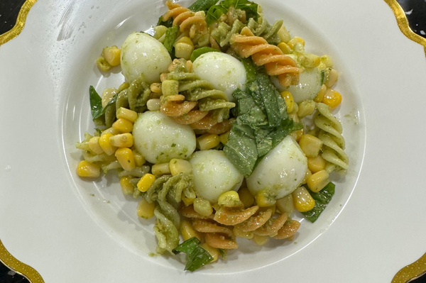 香りの良いバジルと香ばしいピーナッツ、プリプリのパスタに甘いコーン、そしてもちもちのうずらの卵の完璧なハーモニー!見た目も鮮やかなバジル冷製パスタの完成です。冷たいままで召し上がるとさらに美味しくなりますので、冷蔵庫で少し冷やしてからいただくことをおすすめします。どうぞ召し上がれ!