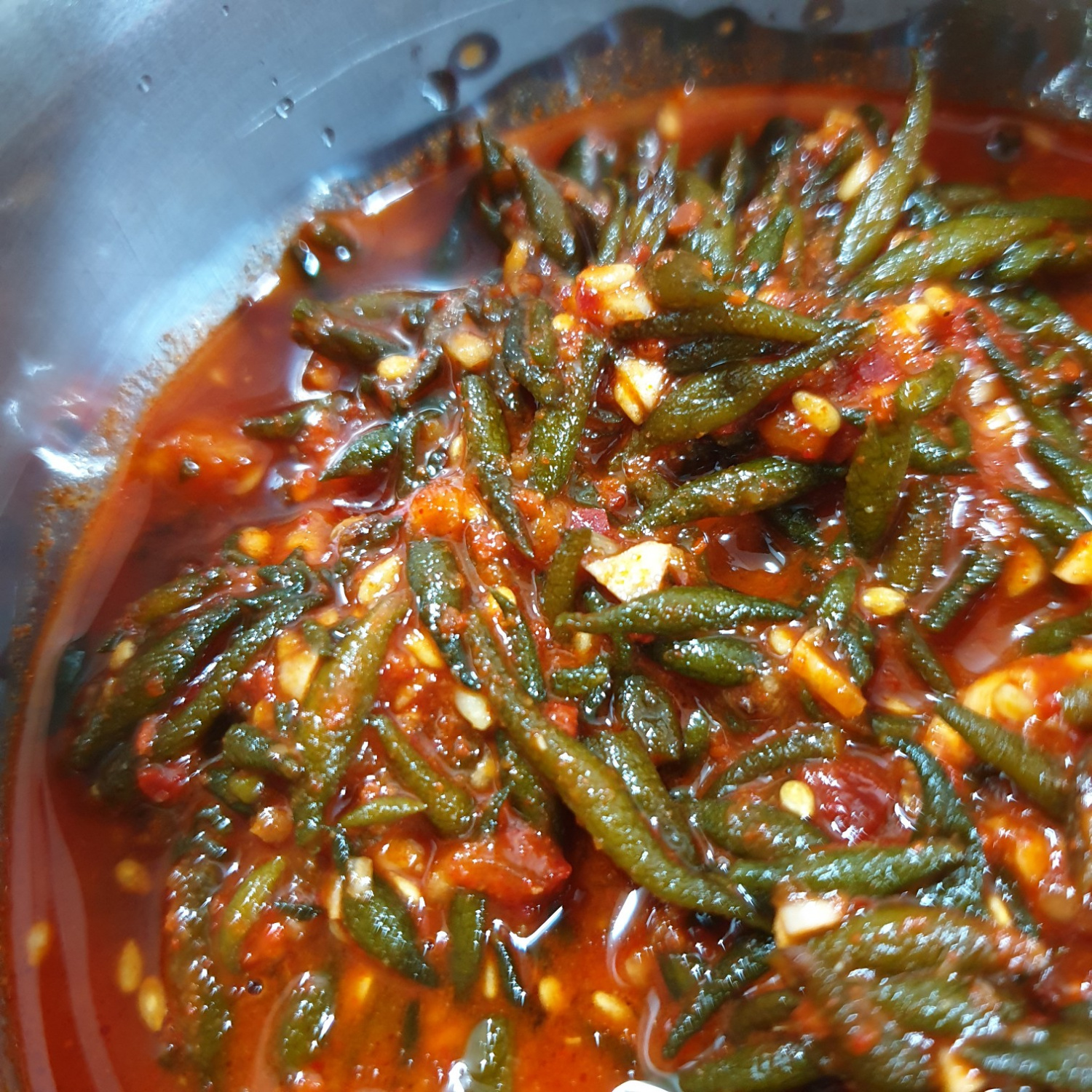 茹でた海藻(トット)は、すぐに冷たい水で洗い、熱を取ります。その後、手でできるだけしっかりと水気を絞り取ってください。水気をしっかり切ることで、味がよく染み込み、シャキシャキとした食感を保つことができます。