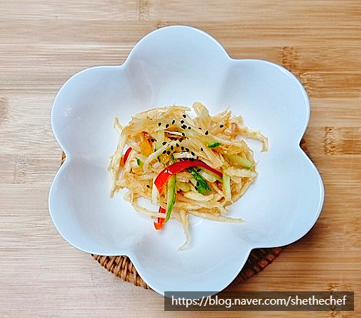 本当に簡単でしょう?こうして美味しいウドン(特種な根菜)和えがあっという間に完成しました!