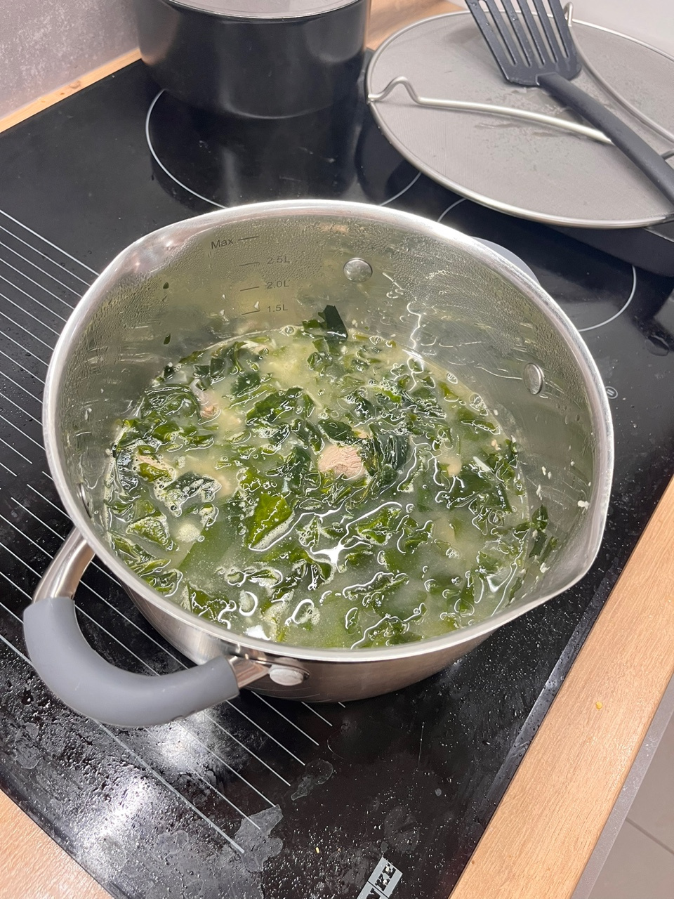 次に、1.5リットルの水を加え、強火でしっかりと沸騰させます。沸騰したら弱火にし、じっくりと煮込むことで、具材の旨味が溶け出し、深みのあるスープになります。