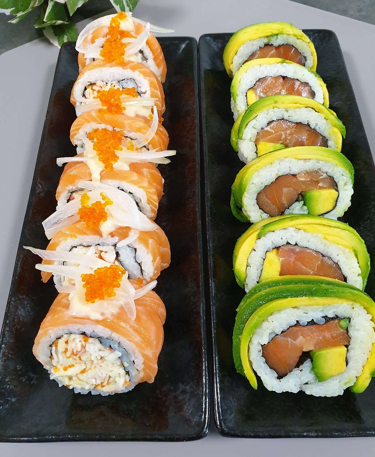 特別な日のために、カニカマとアボカド、サーモンのロール寿司