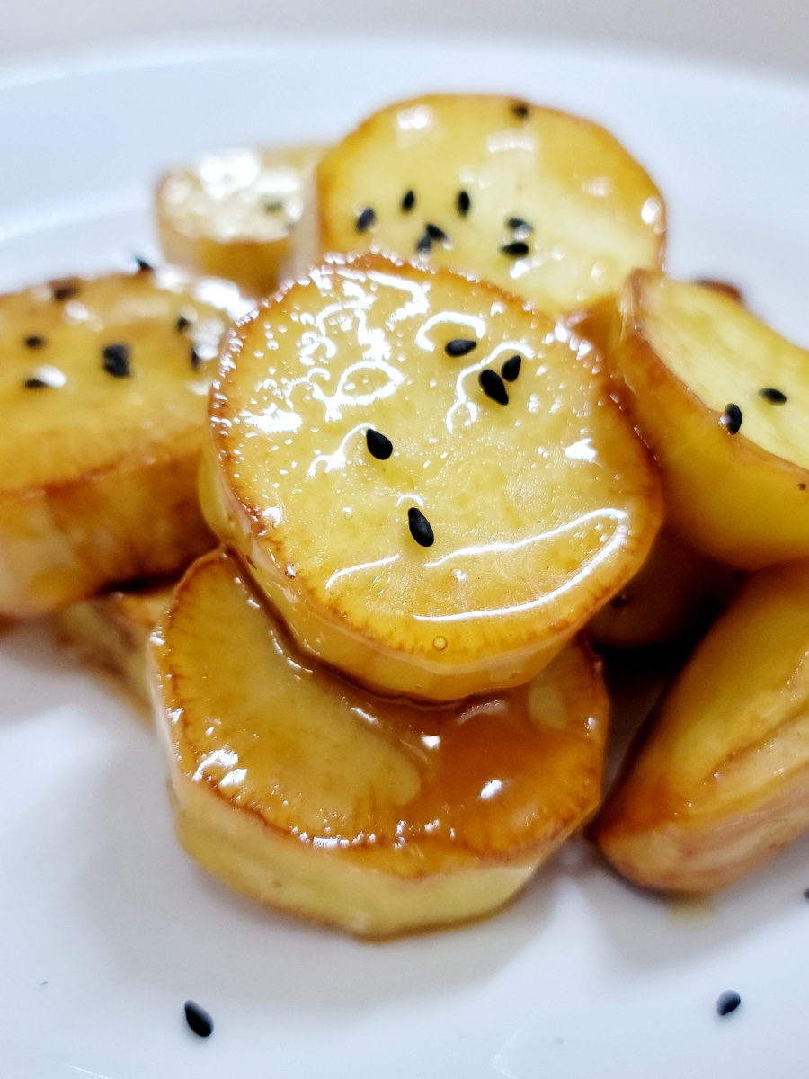 甘くてカリカリのオリジナル大学芋が完成しました!お好みでごまを振っても美味しいですよ。