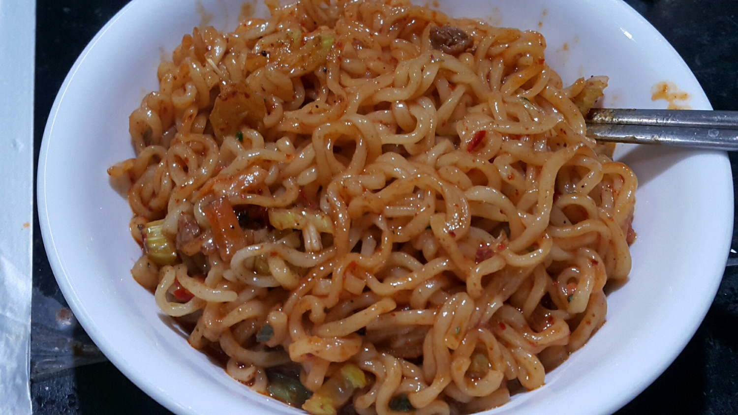 主な材料- プーラーメン または 辛味のあるラーメン 1個