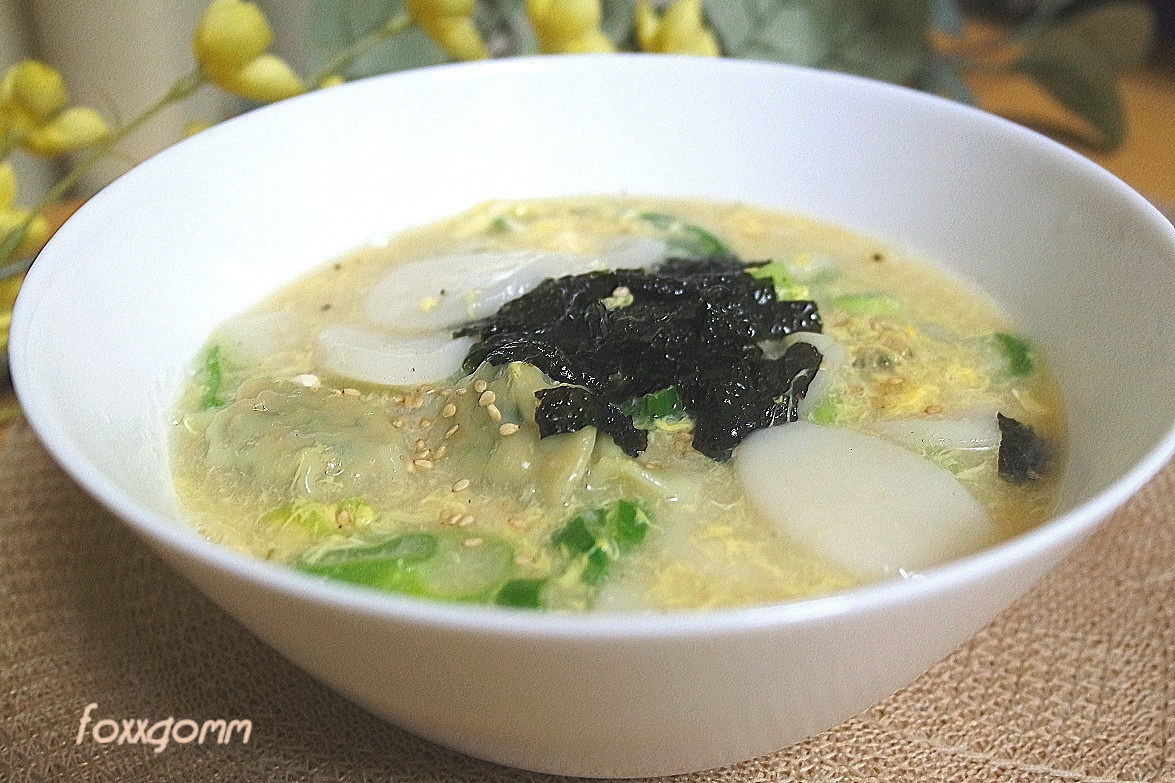 簡単トックマンドゥク(韓国餅と餃子のスープ)