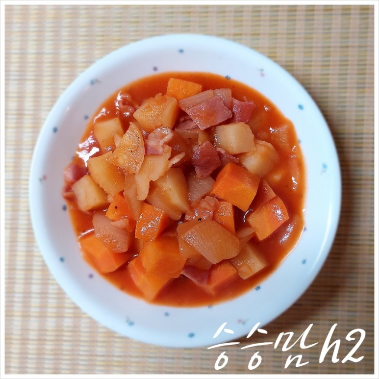 トマトジュースを使って、本格的なイタリアのミネストローネを自宅で簡単かつ手早く作れるレシピです。野菜とベーコンの豊かな風味が溶け合い、寒い日に心と体を温めてくれるでしょう。