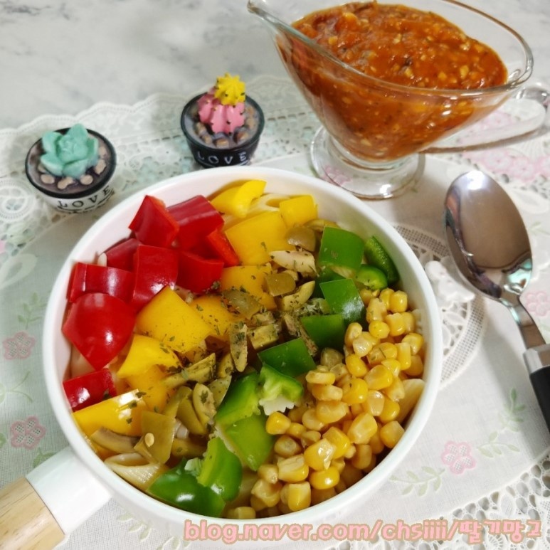 器に茹でたパスタを盛り付け、その上に彩り豊かなパプリカ、コーン、オリーブなどをコブサラダのようにきれいに並べると、見た目も美しい冷製パスタの完成です!または、全ての材料をボウルに入れ、冷ましたトマトソースを加えて全体をよく混ぜ合わせれば、手軽に食べられる冷製パスタの完成です。冷やして食べるとさらに美味しいですよ!
