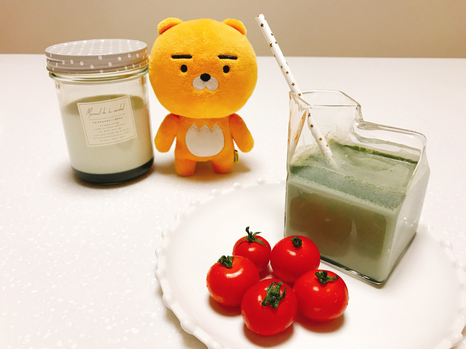 今日は朝食と昼食をしっかり食べたので、夕食は軽めにミニトマトと自家製よもぎミルクで締めくくりました。よもぎミルクとミニトマトは本当に最高の相性です!皆さんもぜひ、家で香りの良い美味しい自家製よもぎミルクを作って楽しんでください。健康的で美味しい一食になりますよ!♡