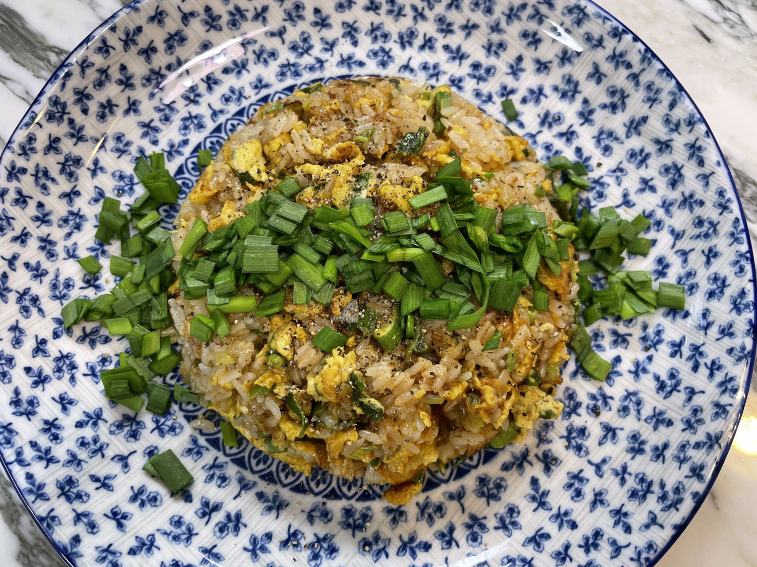 最後に、挽きたての黒こしょうを軽く振りかけ、準備したニラ(またはニンニクの芽など)を細かく刻んでトッピングすると、より食欲をそそり、彩り豊かなチャーハンを楽しむことができます。どうぞ召し上がれ!