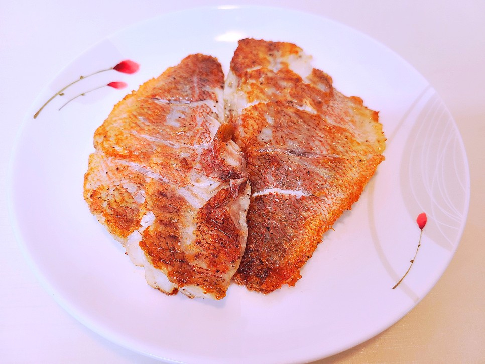 解凍したメバル(カサゴ)の両面に塩とこしょうをまんべんなく振って下味をつけます。特に皮目にしっかりと塩味をつけるようにしましょう。フライパンを中火〜強火で熱し、フライパンが温まったら、メバル(カサゴ)の皮目からそっと入れ、焼いていきます。皮目から焼くことで、パリッとした食感が楽しめます。