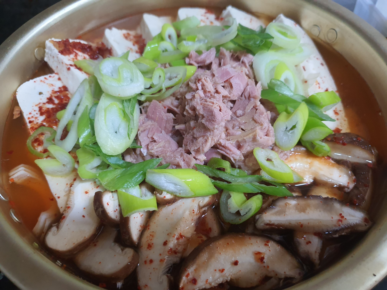 ツナ缶は軽く油を切って、缶汁ごと鍋の中央に乗せます。ツナの旨味が煮汁に溶け込み、一層深みのある味わいになります。