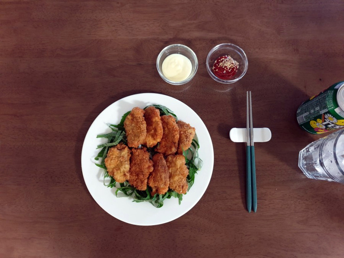 揚げあがった豚ヒレ肉を器に盛り付けたら完成です。今回は特別なソースは作らず、チーズマスタードとケチャップを添えました。甘酢あん(酢豚のタレのようなもの)や甘辛いチキンソースなどと合わせても、とても美味しくいただけます。硬くならず、外はサクサク、中は柔らかいので、お子様にも喜ばれること間違いなしです。特に、冷たいビールと一緒に楽しむと、最高のおつまみになりますよ!