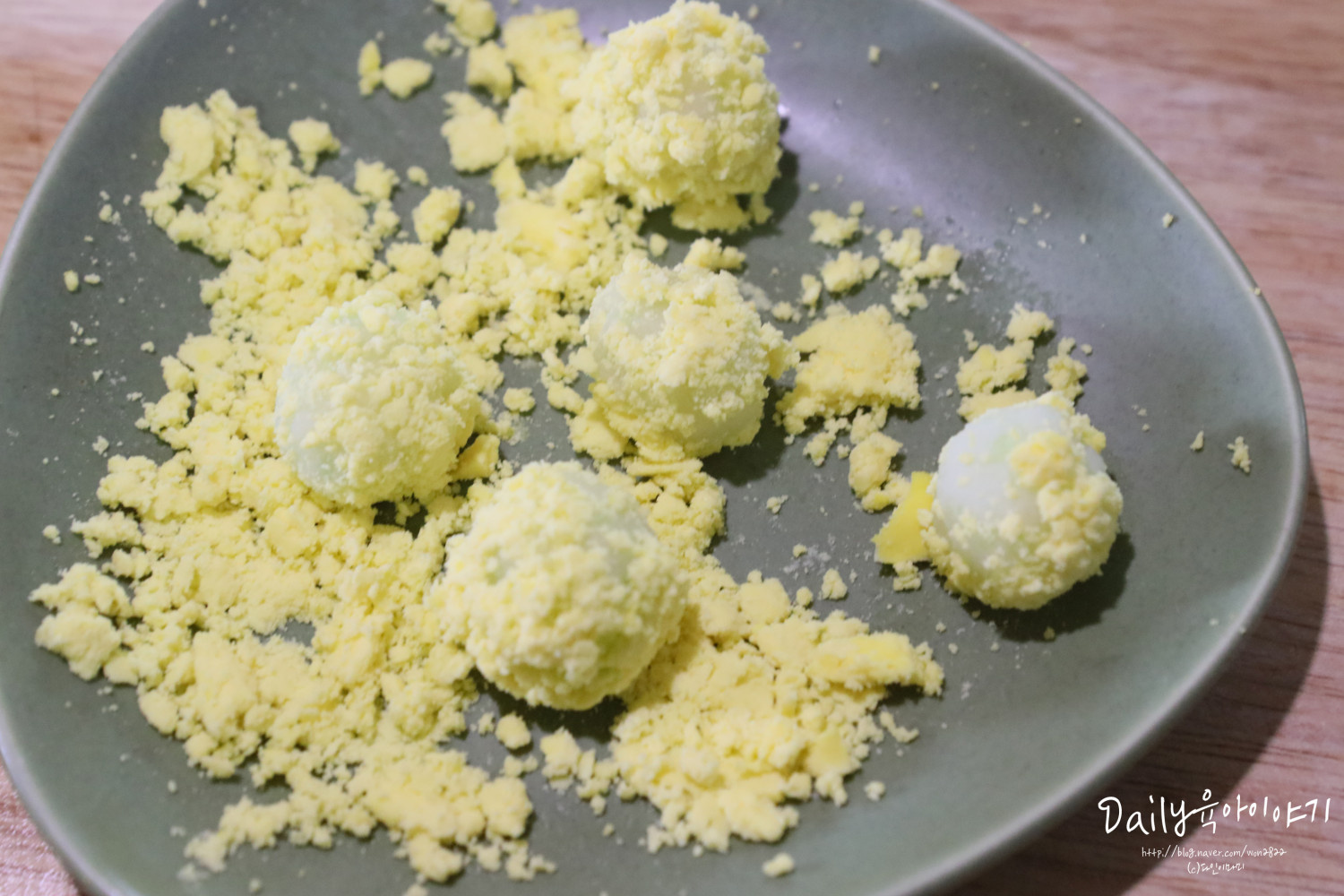 よく茹でて潰しておいた卵黄を用意します。丸めたじゃがいもときゅうりのボールを、卵黄の上にそっと転がし、全体にしっかりとまぶします。卵黄が優しく包み込むことで、栄養価もアップし、見た目も美味しそうな「じゃがいもときゅうりの卵黄ボール」が完成します。赤ちゃんの初めてのおやつにも、手づかみ食べの練習にも、これ以上ない一品です!