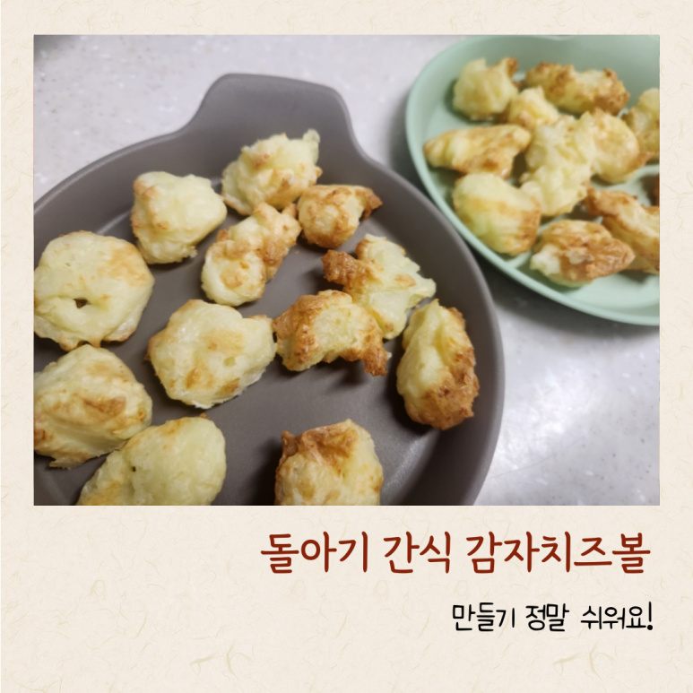 じゃーん!これで、つかまり立ち頃から2歳くらいまでのお子さんが喜んで食べる、ほっくり甘くて香ばしいポテトチーズボールの完成です。栄養満点の赤ちゃんおやつにぴったりですよ!