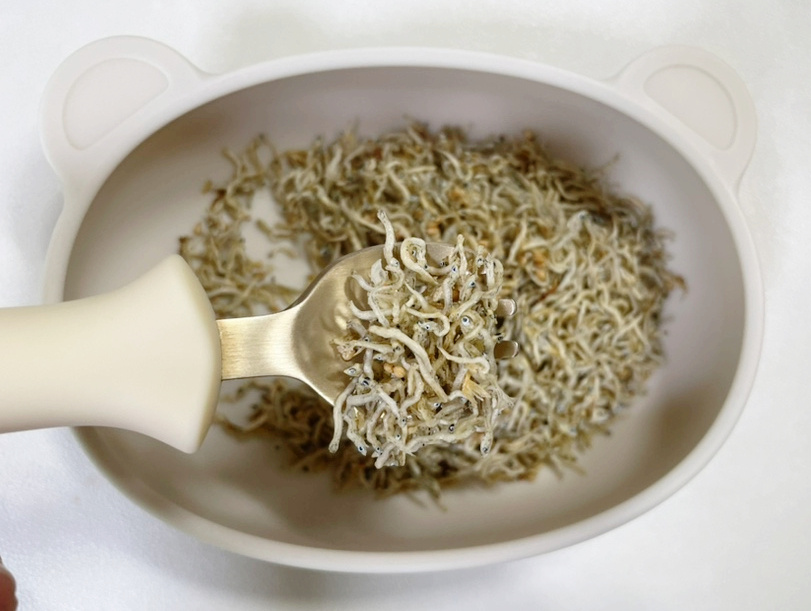 まず、ちりめんじゃこを冷たい水に5分ほど浸し、塩分を軽く抜きます。この工程で、ちりめんじゃこの苦味や塩味が和らぎ、赤ちゃんが食べやすくなります。しっかりと水気を絞って準備してください。
