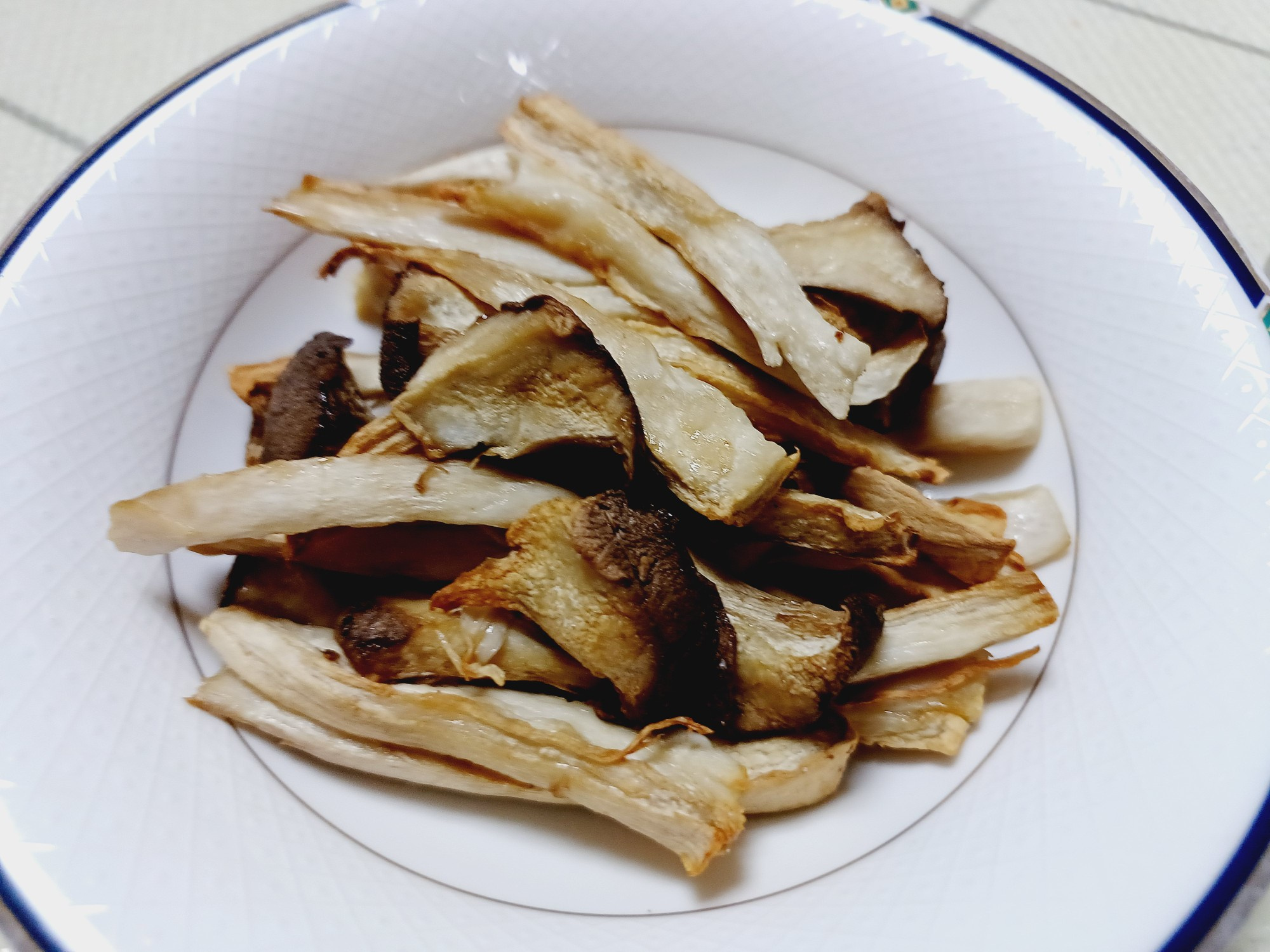 8分後、こんがりと焼きあがったエリンギをエアフライヤーから慎重に取り出し、お皿に盛り付けてください。外はほんのり香ばしく、中はジューシーで、しっかり塩味の効いたエリンギの焼き物の完成です!温かいうちに召し上がると、最高の味わいを楽しめますよ。