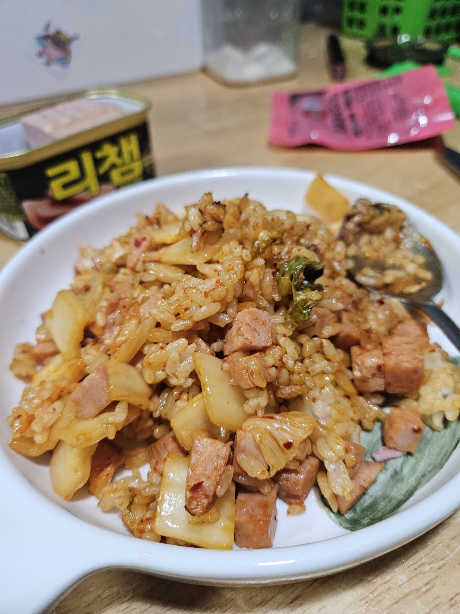 おいしいスパムキムチチャーハンの完成です!熱々のうちに召し上がると、さらにおいしくいただけます。
