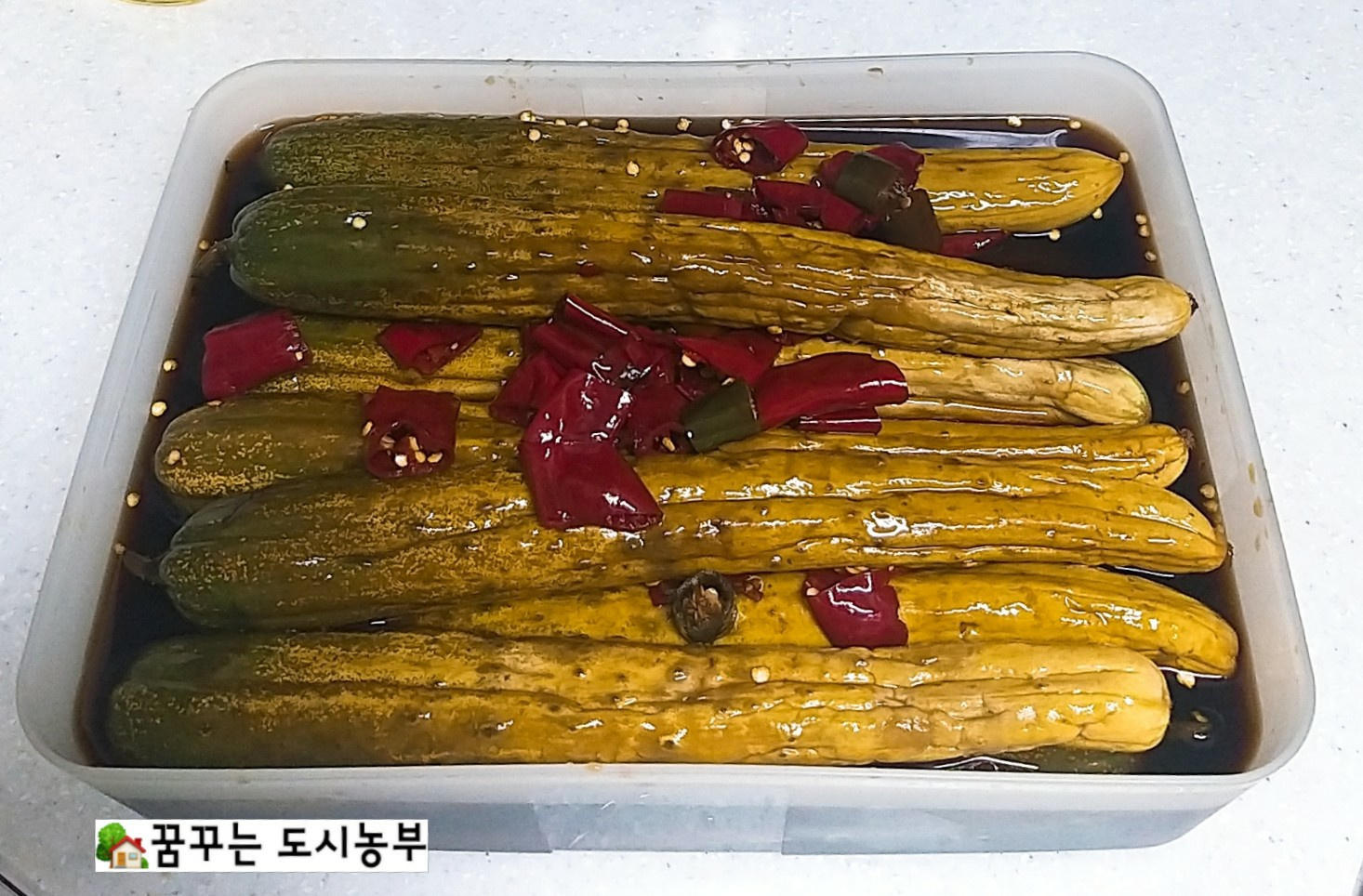 時間が経つと、美味しい醤油漬けきゅうり、通称「オイジ」が完成です!パリパリとした食感と、甘酸っぱい風味が食欲をそそります。