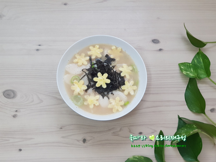 仕上げにこしょうを軽く振りかけて風味を加え、もう一度さっと煮立たせれば、香ばしくて美味しいエゴマのトック(餅)スープの完成です!準備した飾り卵と刻み海苔をトッピングして、温かいうちに召し上がれ!