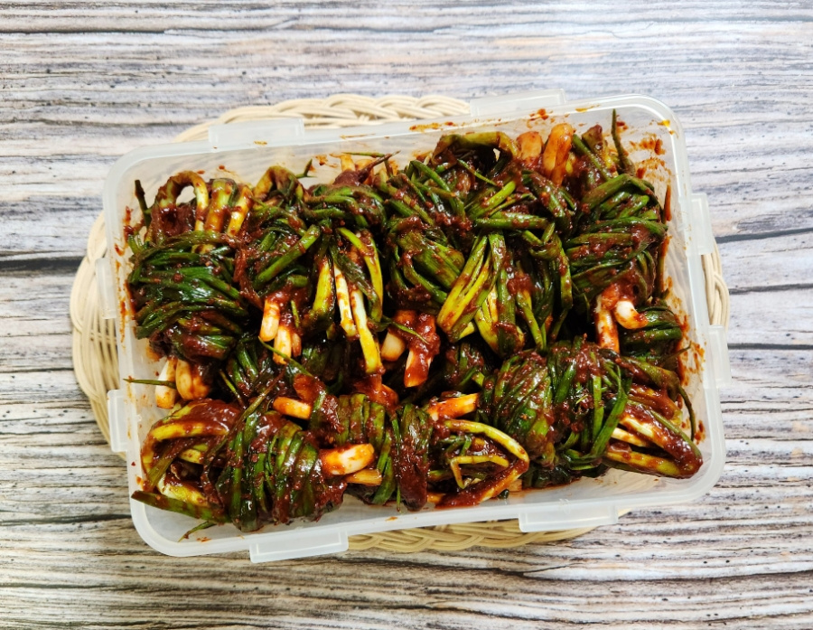 じゃーん!食欲をそそる美味しいネギキムチの完成です。新鮮に作ったネギキムチはすぐに食べても美味しいですが、冷蔵庫で2週間ほど熟成させると、さらに深い味わいと風味を楽しむことができます。ご飯のおかずとして、あるいは特別な料理に添えて、美味しく召し上がってください!
