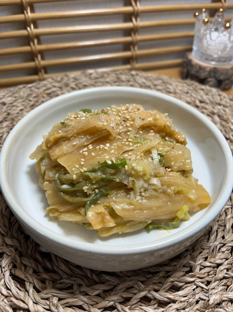 最後に、お好みで白ごまを適量振りかけ、軽く混ぜ合わせて炒めれば、美味しいえごま油キムチ炒めの完成です。このえごま油キムチ炒めは、ピリ辛のキムチ炒めに劣らず、深く香ばしい味わいが楽しめます。よく熟成したキムチが冷蔵庫にあるなら、熟成キムチを活用して素晴らしい常備菜を作ることができます。温かいご飯の上にたっぷりのせて食べると、まさに絶品です!冷蔵庫で保存しておき、必要な時にいつでも取り出して食べられるので、簡単で美味しいこのえごま油キムチ炒めのレシピで、食卓を豊かにしてください。
