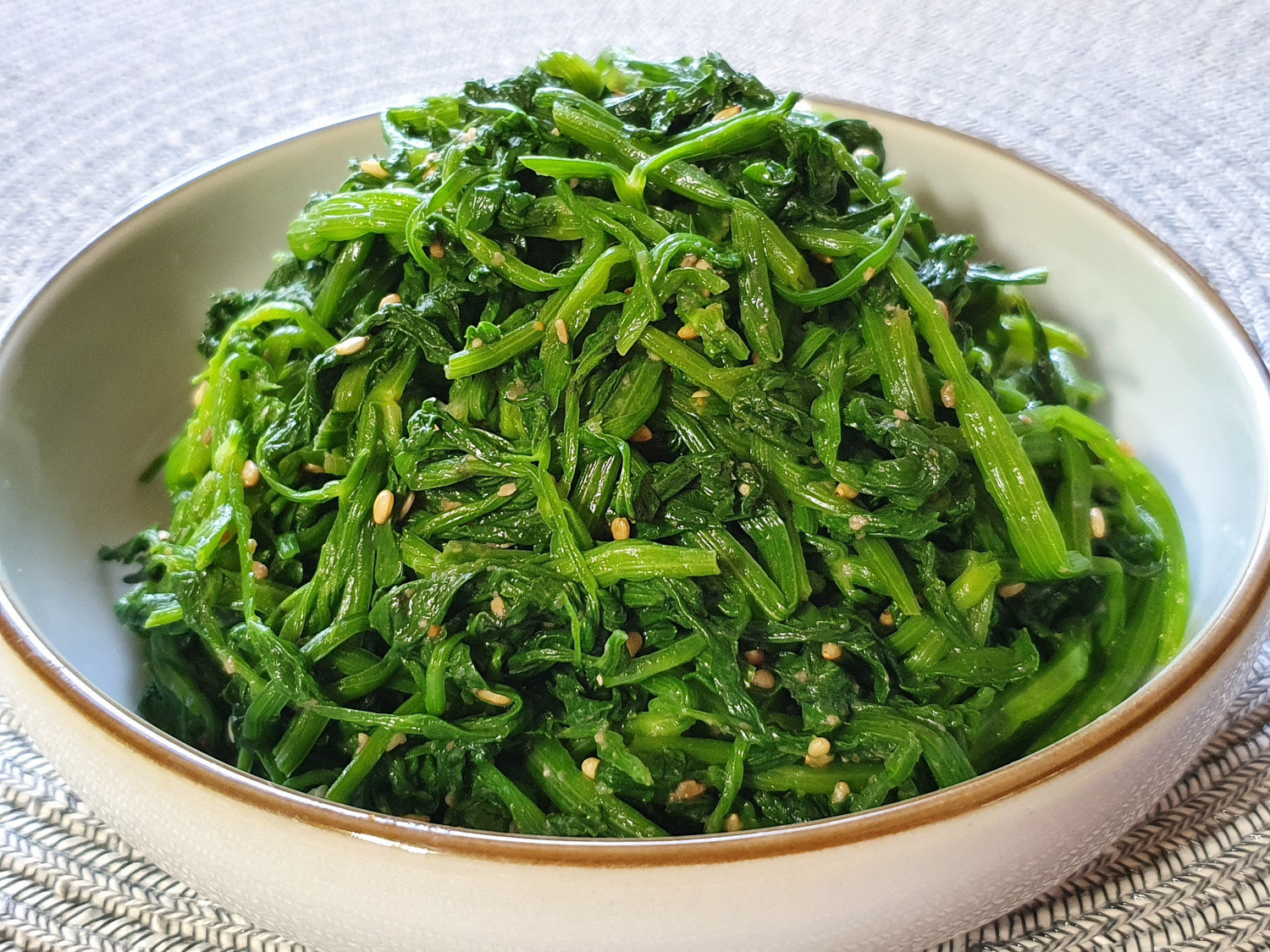 調味料が均一に絡むように、手で優しく「もみもみ」と和えてください。デンジャンのコクとごま油の香ばしさがミナリによく馴染むように、しっかりと和えます。味見をして、もし薄ければ塩をほんの少し加えて調整してください。