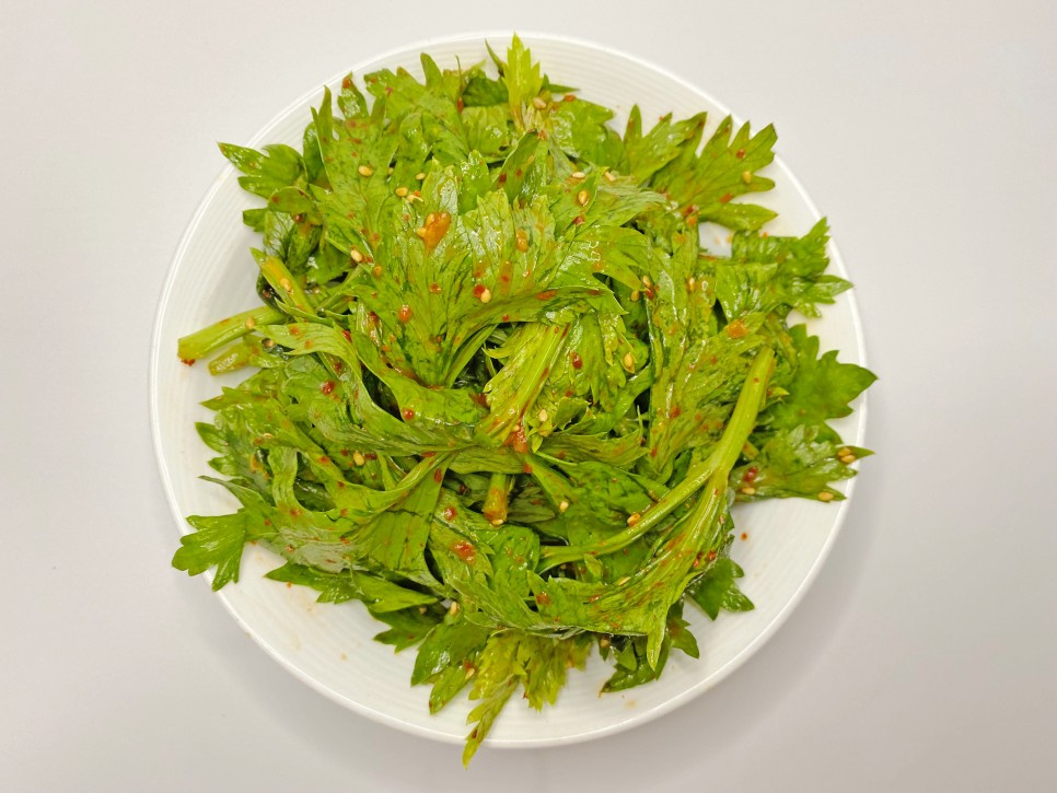 セロリは茎の部分だけを使い、葉は捨ててしまう方が多いのではないでしょうか?実は、セロリの葉にはビタミンやミネラルといった栄養素がより豊富に含まれているのです。この香り高いセロリの葉を使って、和え物やナムルを作ると本当に絶品ですよ!さっと茹でて和えても美味しいですが、今日はビタミンAが豊富で目の健康にも良いゲジョリのレシピを詳しくご紹介します。シャキシャキとした食感と甘酸っぱい風味が食欲をそそる、素晴らしい副菜になるはずです。