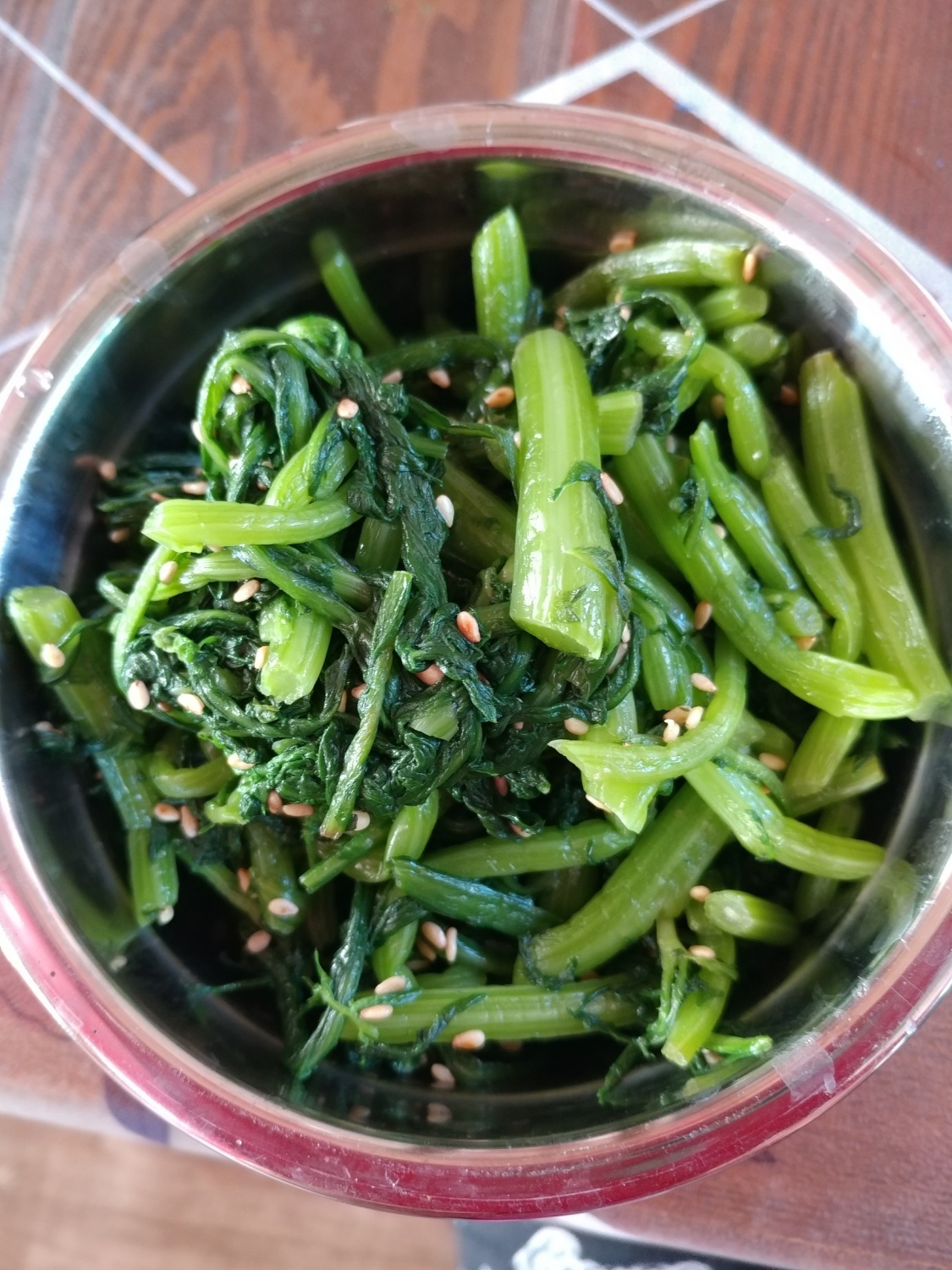 ボウルに準備した春菊を入れ、味塩(または塩)で味を調えながら、優しくもみこむように和えます。次に、香ばしいごまを加え、風味をさらに豊かにしたい場合は、えごま油(またはごま油)をほんの少しだけ加えて軽く和えたら完成です。春菊本来の香りをより強く楽しみたい場合は、ごまやえごま油は省略しても構いません。春の香りが満載のヘルシーな春菊の和え物で、食欲の秋ならぬ食欲の春を呼び覚ましましょう!
